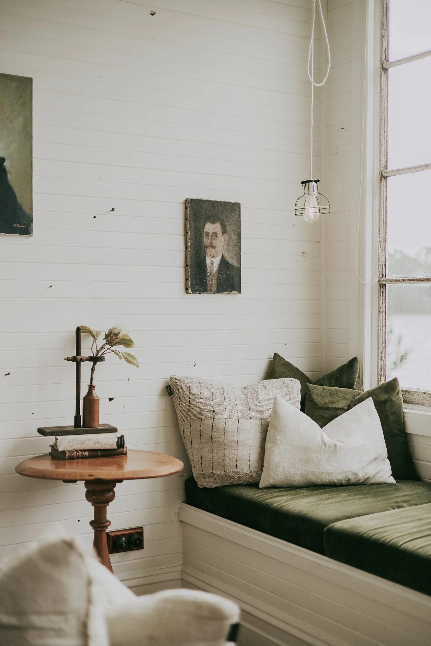 Captain’s Rest began life as a humble shack, originally hosting weary miners and fishermen. Recently named by Vogue as Tasmania’s ‘best stay’, the setting and interior have been likened to a kind of living poem, celebrating all that is wondrous, mystical, and awe-inspiring. Now heritage-listed, the shack has been lovingly preserved and beautifully curated by author, stylist and teacher Sarah Andrews. A former scientist, Sarah has gained cult status and worldwide recognition with a timeless style that collaborates with nature. Her philosophy is all about storytelling with curiosities, which she creates with unique results and attention to detail. The decor throughout shows how thoughtfully chosen vintage items can feel incredibly stylish while brimming with character, resulting in something truly special.